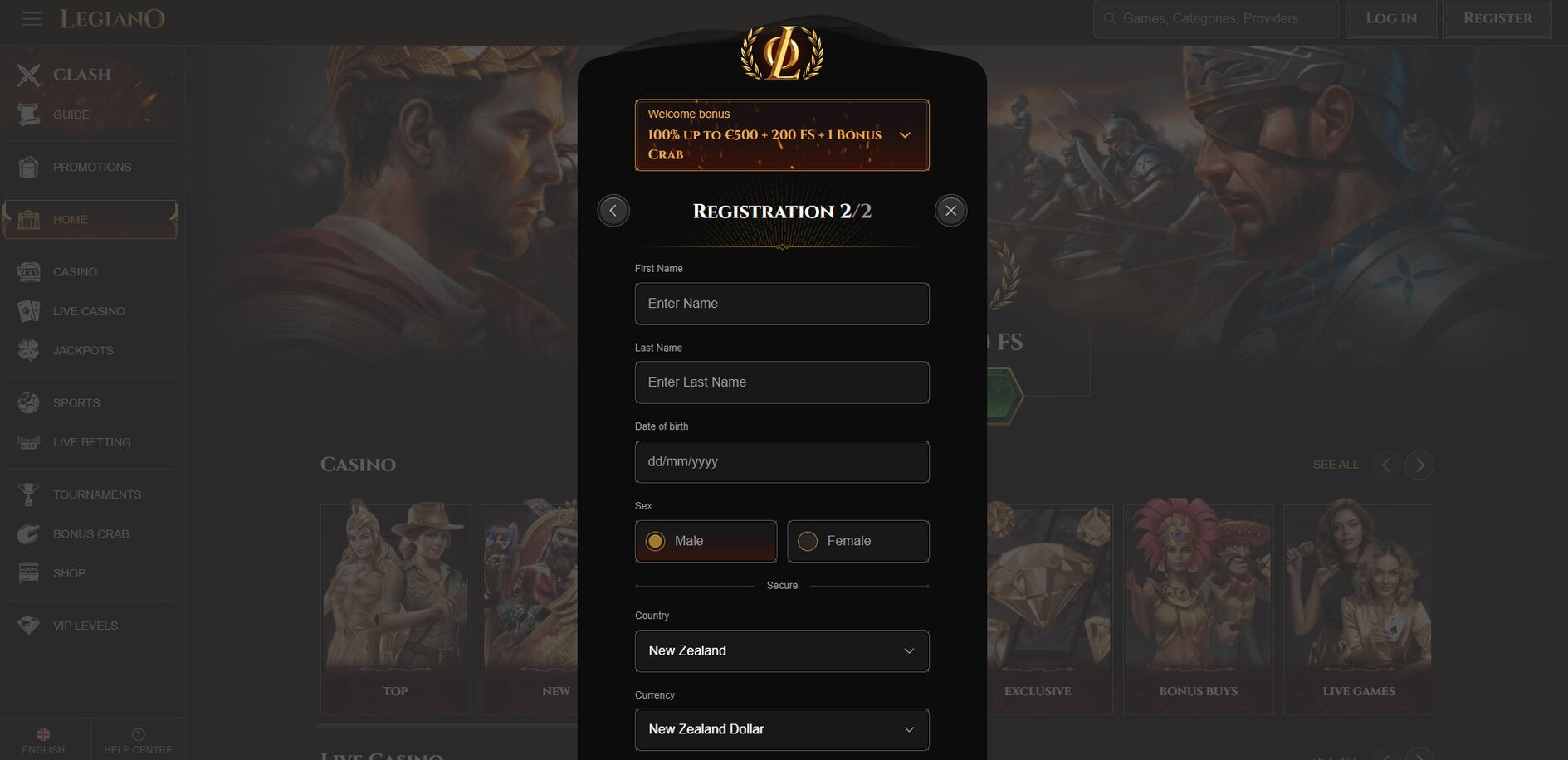 Pour vous inscrire au casino Legiano, procédez comme suit :